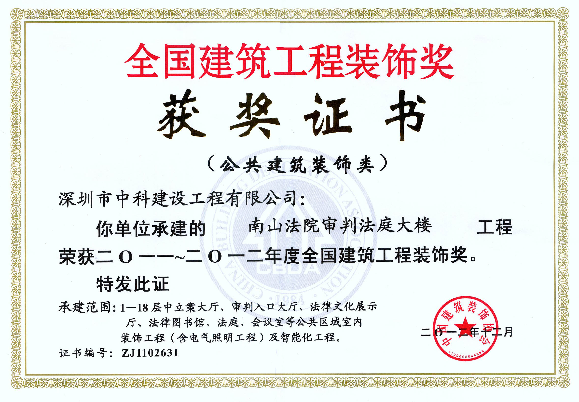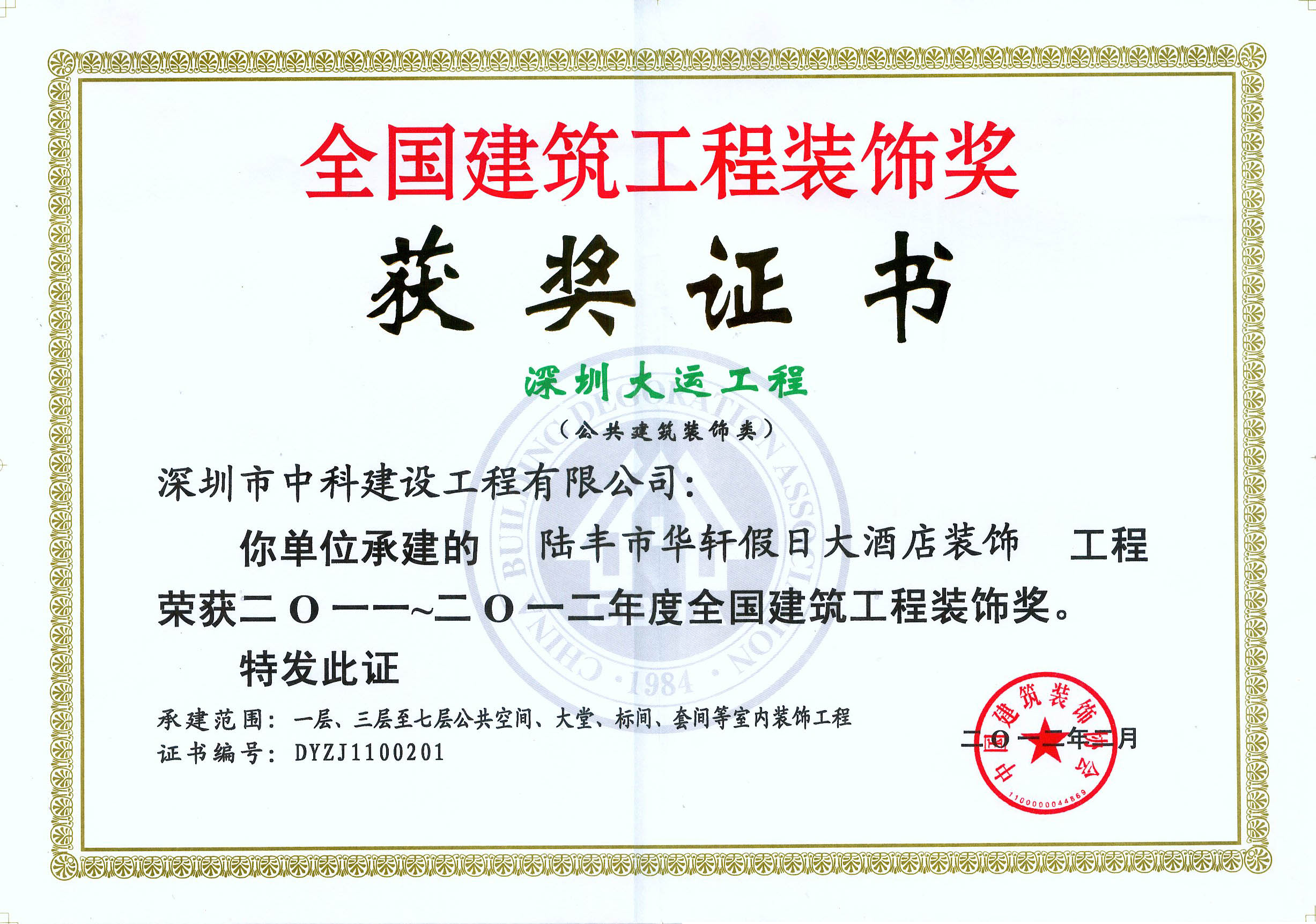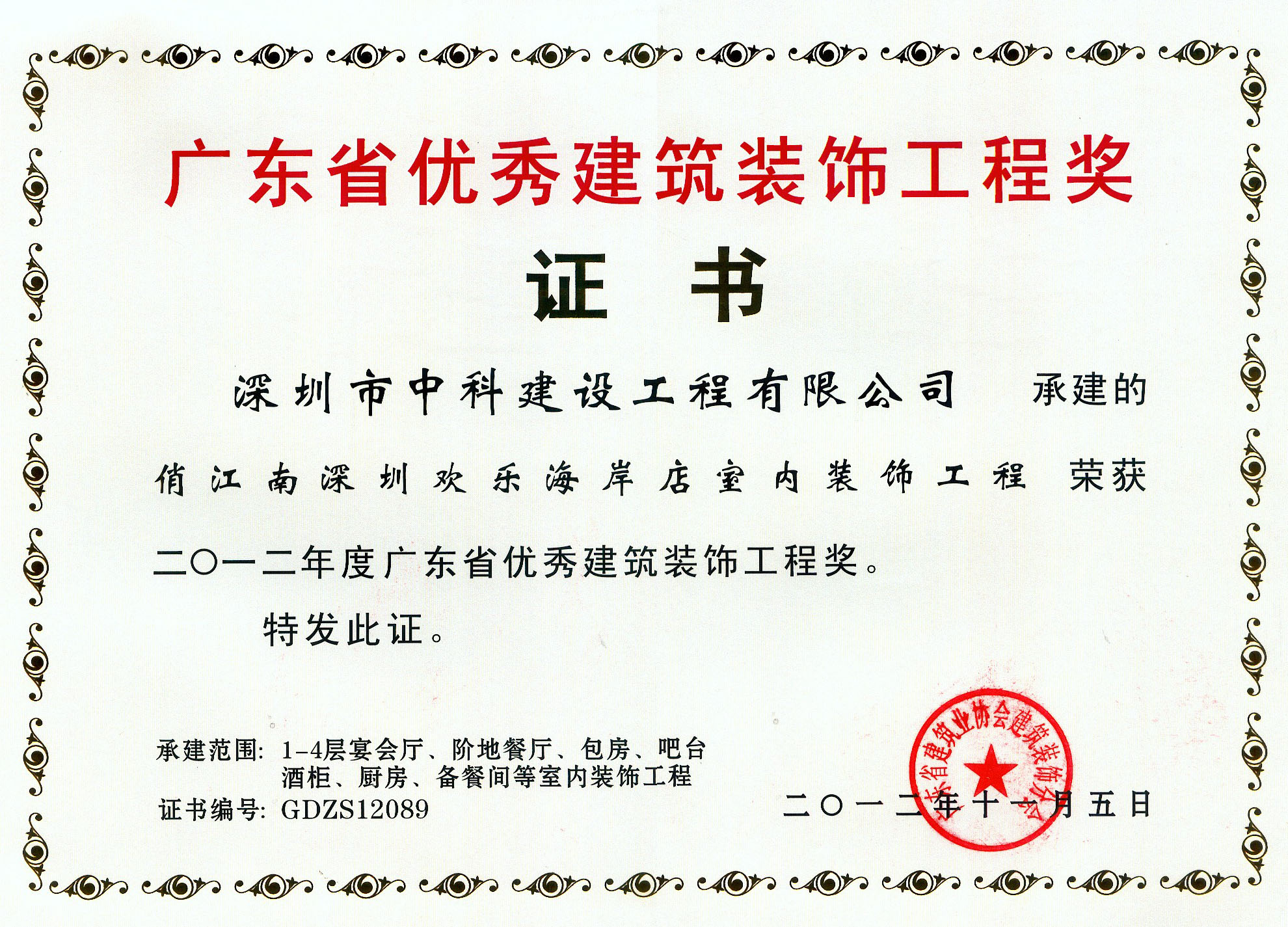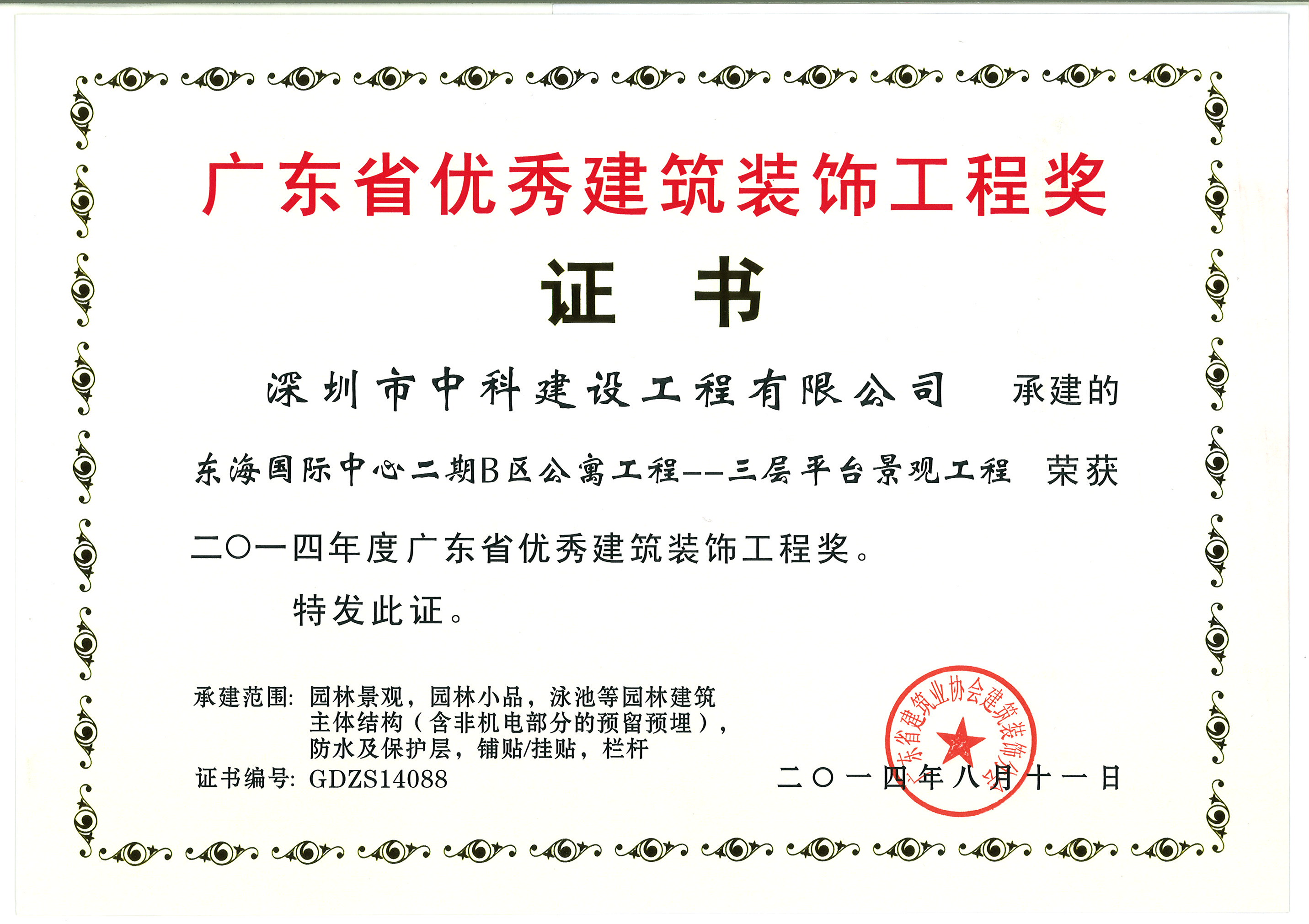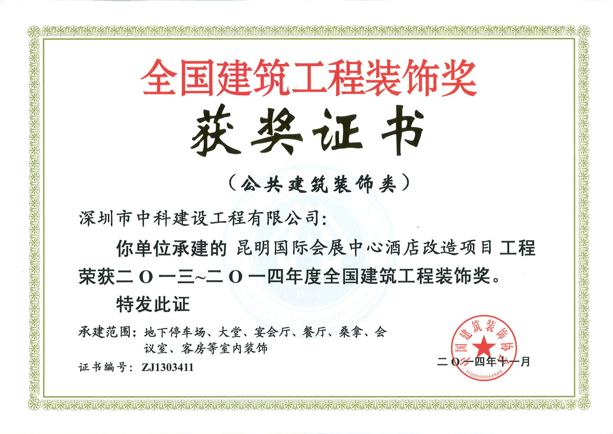 廣東省優(yōu)秀建筑裝飾工程獎