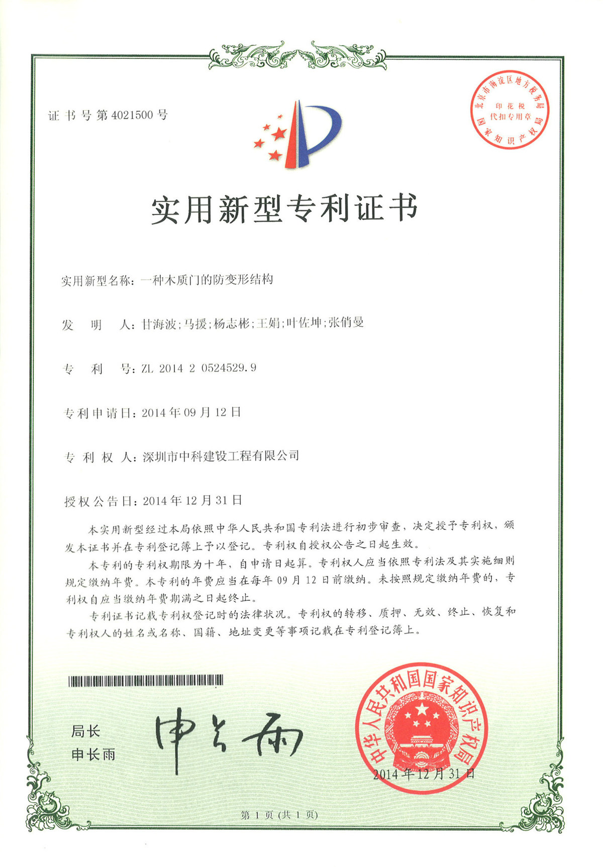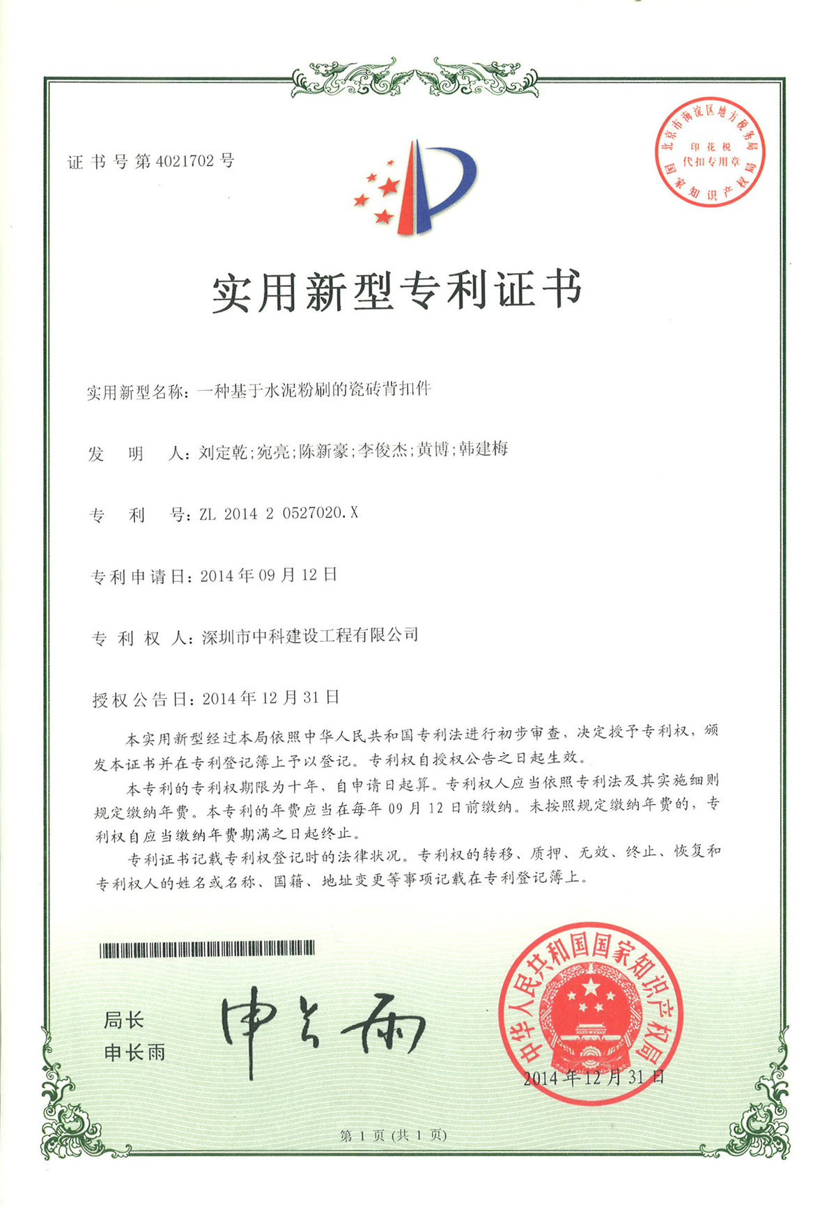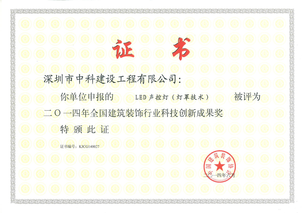 全國建筑裝飾行業(yè)科技創(chuàng)新新成果獎
