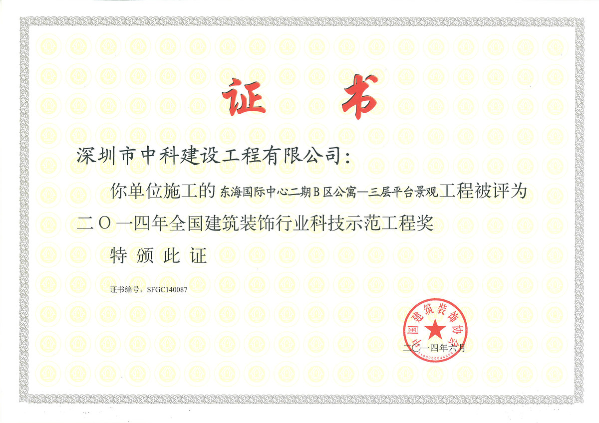 全國建筑裝飾行業(yè)科技示范工程獎