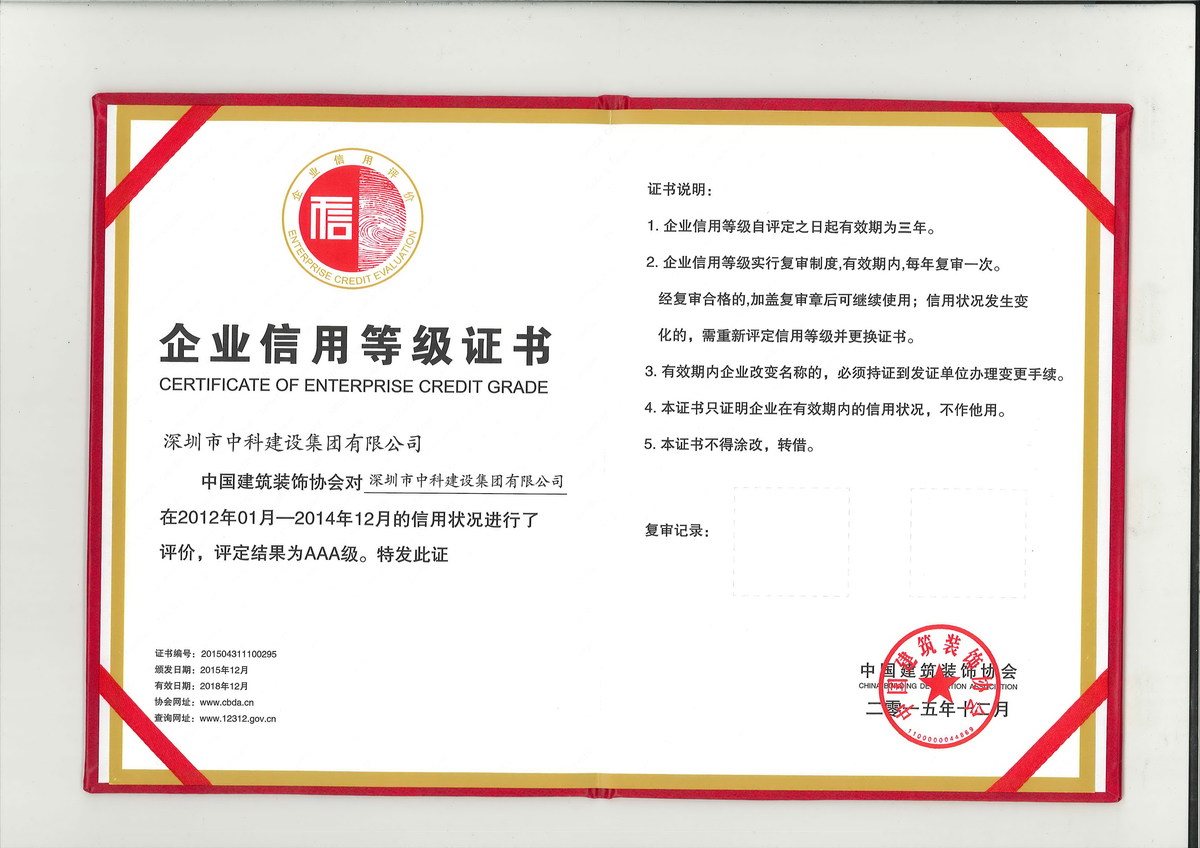 企業(yè)信用等級證書