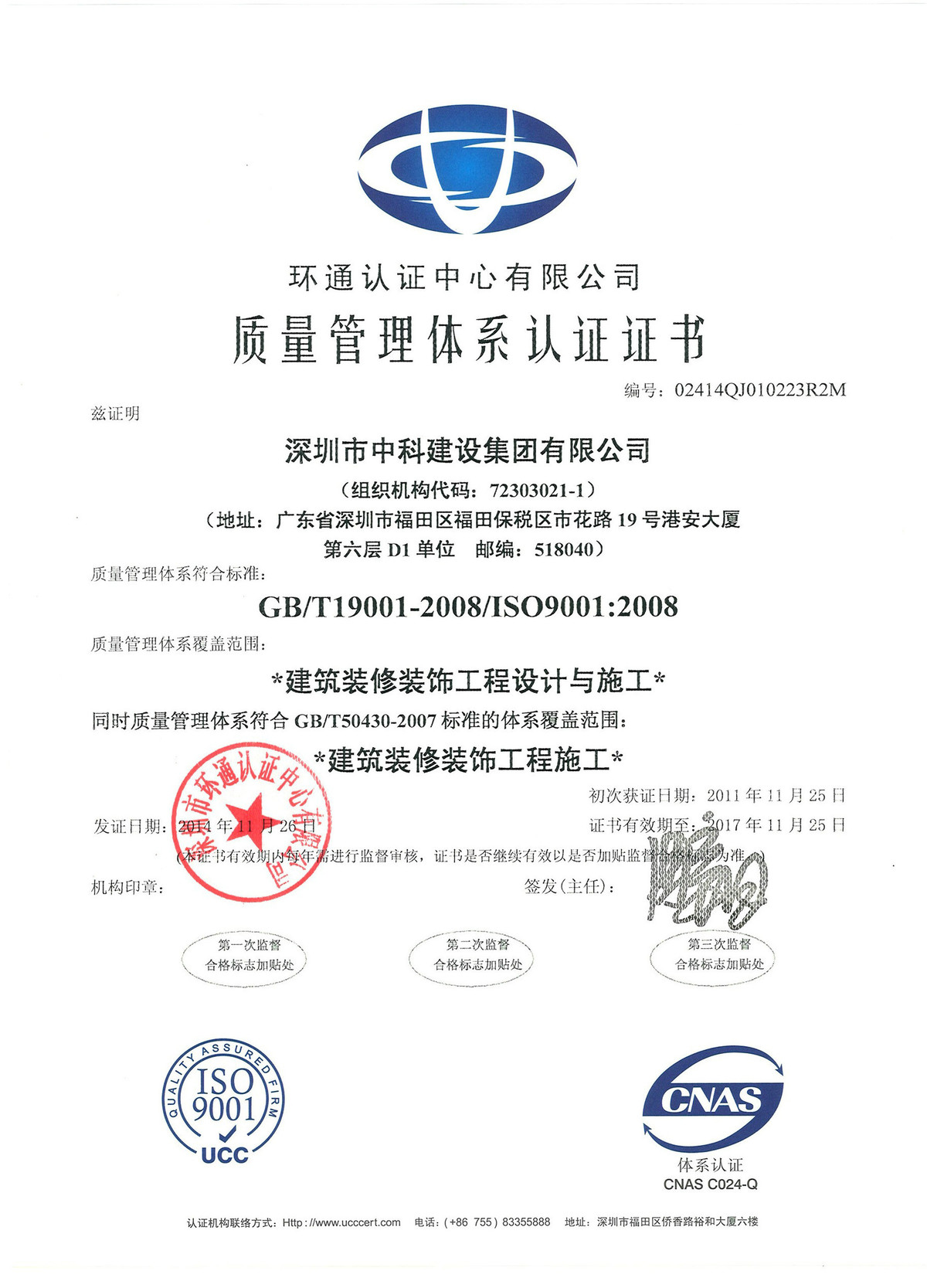 質(zhì)量管理體系認證證書