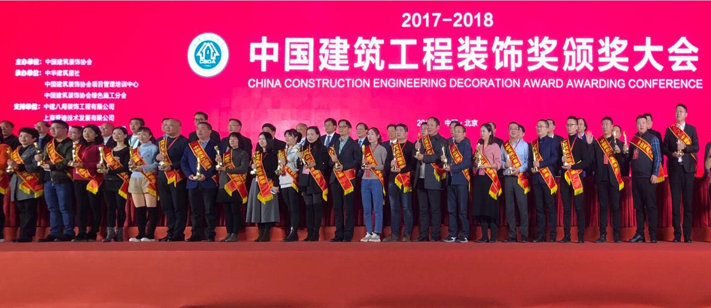 1月9日,由中國建筑裝飾協會主辦的2017-2018年度中國建筑工程裝飾獎大會在北京國家會議中心盛大舉行,中國建筑裝飾協會領導、各地方裝飾協會負責人以及來自全國各地的裝飾企業代表出席了本次盛會。中科建設集團以高質量的施工品質獲得了行業的認可,榮獲了多項中國建筑工程裝飾獎。