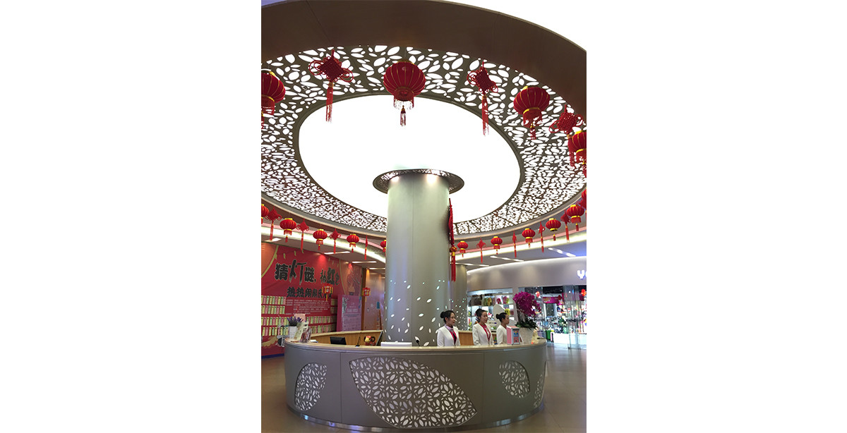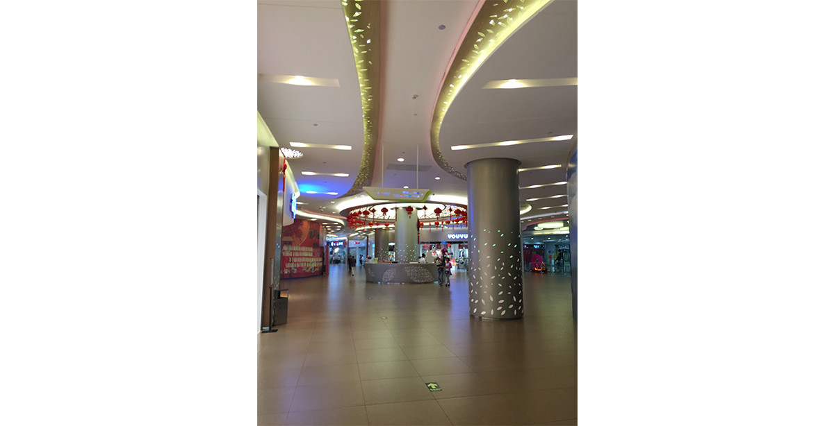 深圳北站東延平臺商業項目裝飾裝修工程位于深圳市龍華新區,設計理念為時尚與綠。將空間賦予生機盎然的綠色情調,采用葉片狀的造型天花、墻面、柱體配合燈具燈光效果達到綠的主題,時尚與環保融為一體。